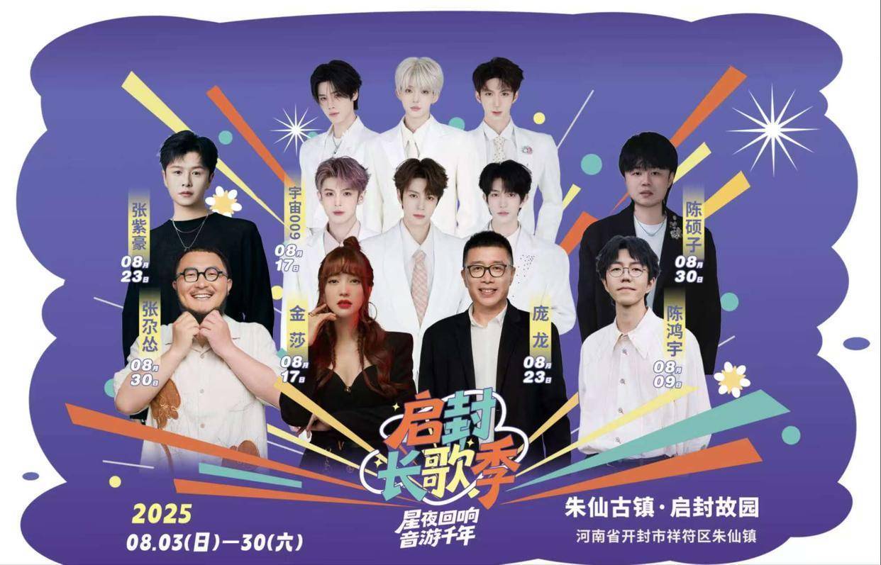 今晚诗意民谣专场后,启封长歌季将持续引爆夏夜。8月17日的甜辣专场,金莎将用《被风吹过的夏天》唤起集体青春记忆,宇宙男团009则带来抖音爆款热舞,实现经典与新潮的激情接力。随后在8月23日的时光回响专场,庞龙将重现全民传唱的《两只蝴蝶》,张紫豪将献上《可不可以》,歌手们用不同代际熟悉的声线搭建时光桥梁。活动将于8月30日以乡野与城市对撞专场收官,张尕怂的乡音《哎呀,不好啦》将与陈硕子的都市民谣《凌晨三点》形成共鸣,让传统韵味与当下情绪交融。