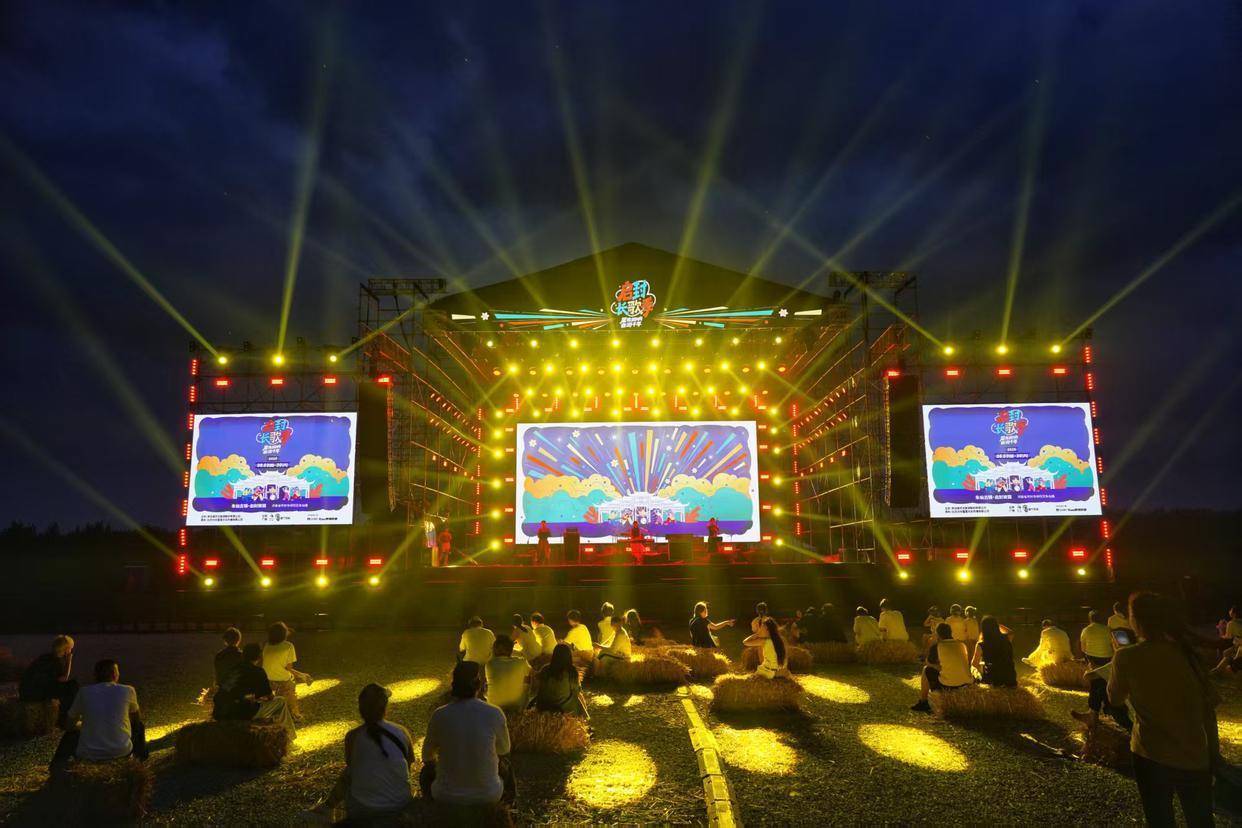 这场持续28天(8月3日至30日)的音乐盛宴,以“音乐+非遗+国潮”为核心,通过精心设计的三大主题舞台为不同游客群体提供丰富体验。其中,长歌舞台聚焦新民乐互动,致力于让非遗韵律与现代节奏碰撞,成为代际文化对话的纽带;草坪舞台则主打轻松氛围,以不插电民谣与诙谐脱口秀为主打,为家庭游客提供休闲空间;而作为主舞台的星河舞台,则凭借电音、流行乐及大咖演出,持续点燃古镇的夜晚活力。